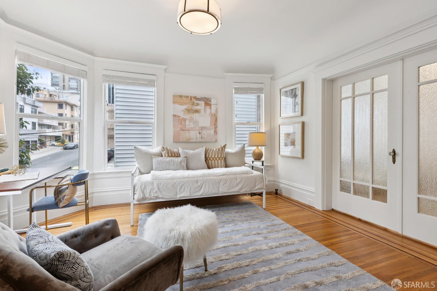 Prime Russian Hill | Updated 1BD + Flexible 2BD | Parking & Storage. Spacious and sun-filled residence featuring hardwood floors, designer lighting, and charming old-world details throughout. The large primary bedroom offers a deep closet, while the bright windowed bath adds classic appeal. A well-equipped kitchen includes ample cabinetry and stainless steel appliances. The formal dining room flows into a corner living room that can easily be reimagined as a second bedroom or study, offering flexibility to suit your needs. Additional highlights include one parking space, common laundry, and dedicated storage. Situated in the heart of Russian Hill, with Nob Hill, Pacific Heights, the Marina, and North Beach just moments away. Excellent walk and transit scores, with convenient access to BART, light rail, cable cars, and bus lines.